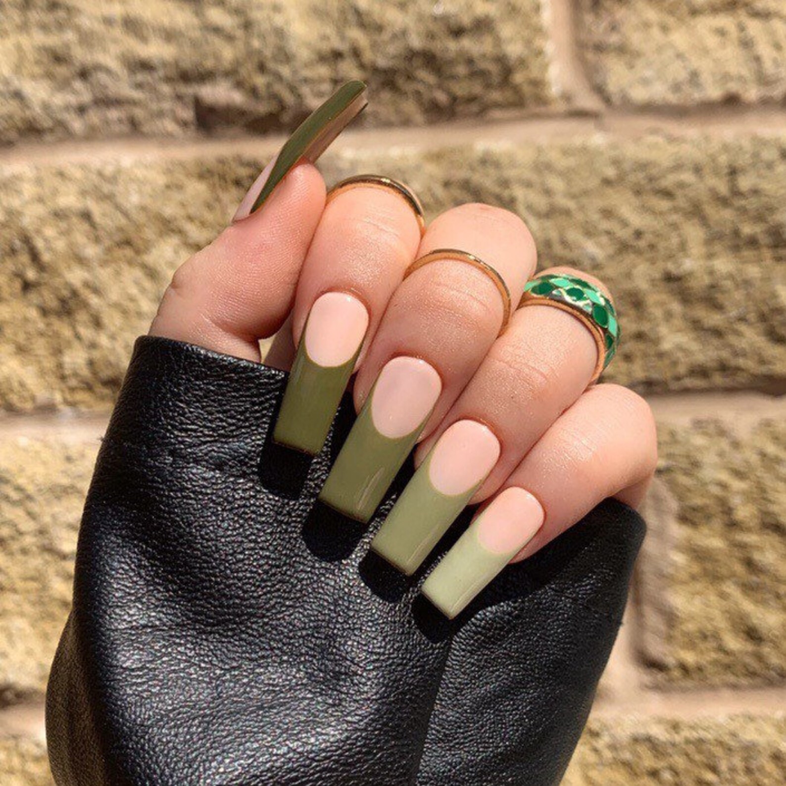 Olive Green French Tips. elevate your nail game with these trendy olive green french tip designs. explore 30+ olive green nails for a chic and earthy look. you can never go wrong with a unique french mani—like this one that features green tips with a twist. Get inspired by our top ideas to achieve a chic and. explore the lush allure of olive green french tip nails, where sophistication meets the distinct hue of olives. olive green french tip nails this design features glossy olive green french tips with a sleek black outline, creating a sharp and modern look. Find out how to complement olive green with gold, floral,. This rich and versatile green shade brings a touch of warmth and earthiness to your manicure, creating a look that’s both refined and effortlessly chic. classic olive green french tips are a great way to add a subtle yet sophisticated look to your nails.